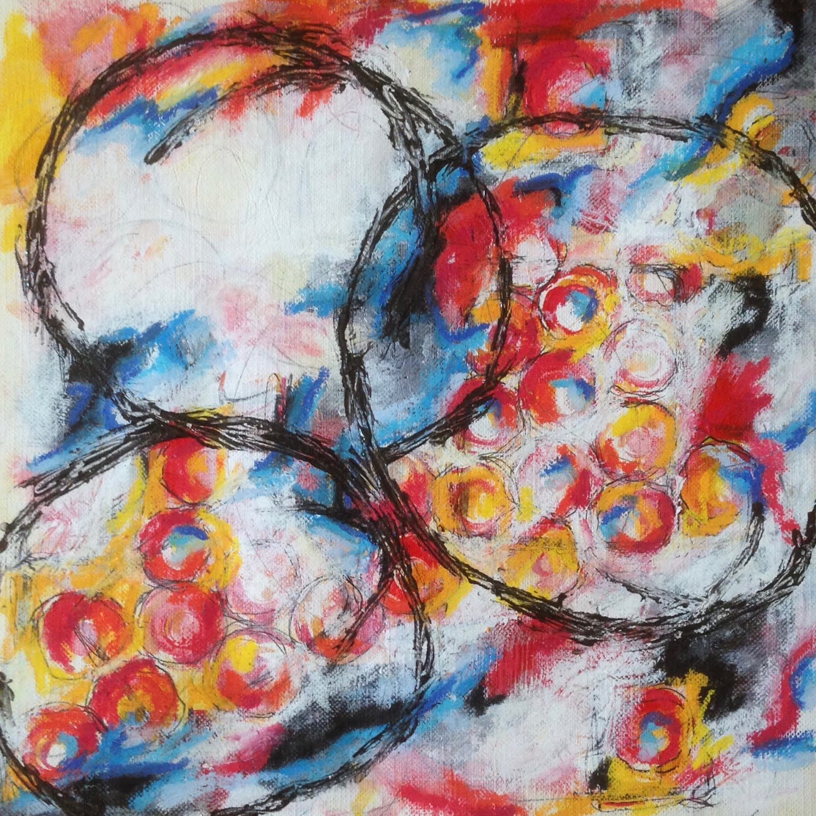 Simone Nijboer's blog, drawn again and again by what speaks to me as her free-spirited, inner-child-inspired experiments with paint, pencil, and crayon. Earlier in April she started a new series of four paintings, writing,